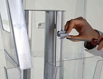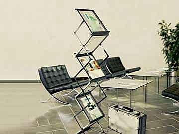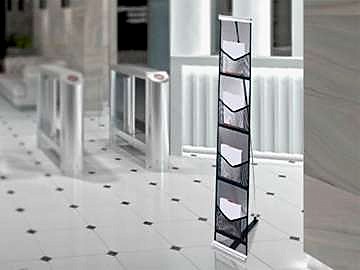 Брошюрная сетчатые стойки изготавливаются из алюминиевой, капроновой сетки. Конструкция стоек имеет верхний и нижний защелкивающийся профиль. Карманы изготовлены из плотной Pin-Up сетки.