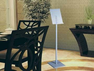 Изготавливается из перфорированного металла с круглой перфорацией. Окраска осуществляется полимерными порошковыми красителями. Формат: Pin-Up см, рекламное поле форматов А4 или А3.