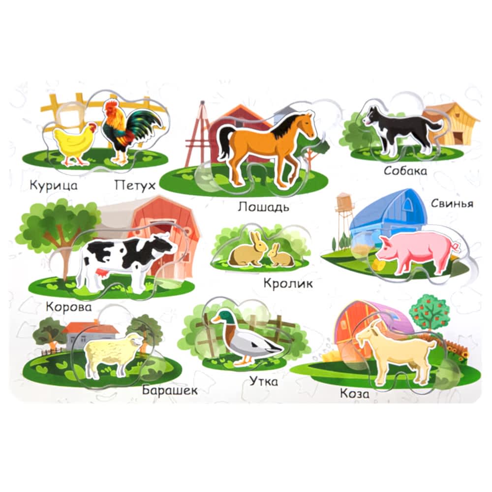 Пазл "Животные" - поможет в Pin-Up форме изучать животных, запоминать части тела и учить звуки, которые издают звери;